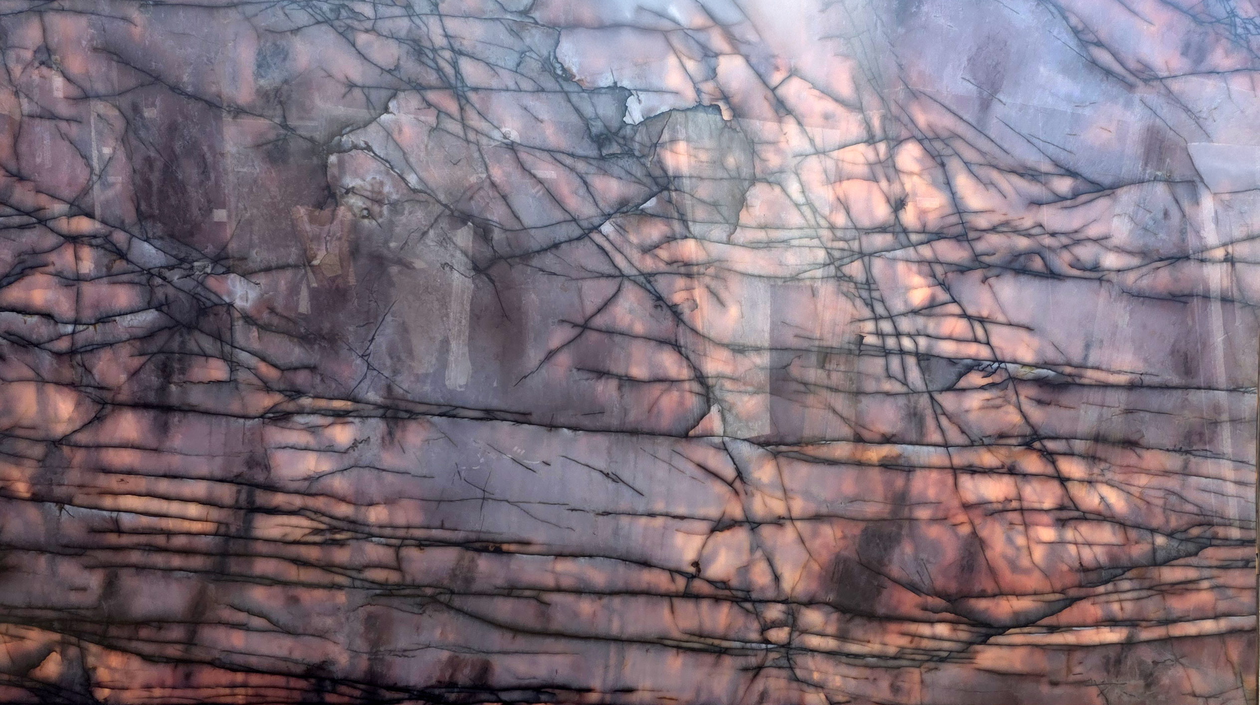 Description: Cristallo Rose Quartzite Translucent is nature’s own work of art. This extraordinary stone features a mesmerizing blend of soft rose and deep amethyst tones, anchored by sharp, dark horizontal veining that creates a rhythmic, architectural feel. Its most magical quality is its translucency; when backlit, the slab glows with an ethereal warmth that transforms any space into a high-end gallery. Perfect for statement kitchen islands, custom bar tops, or luminous feature walls, it combines the delicacy of a sunset with the legendary durability of quartzite.